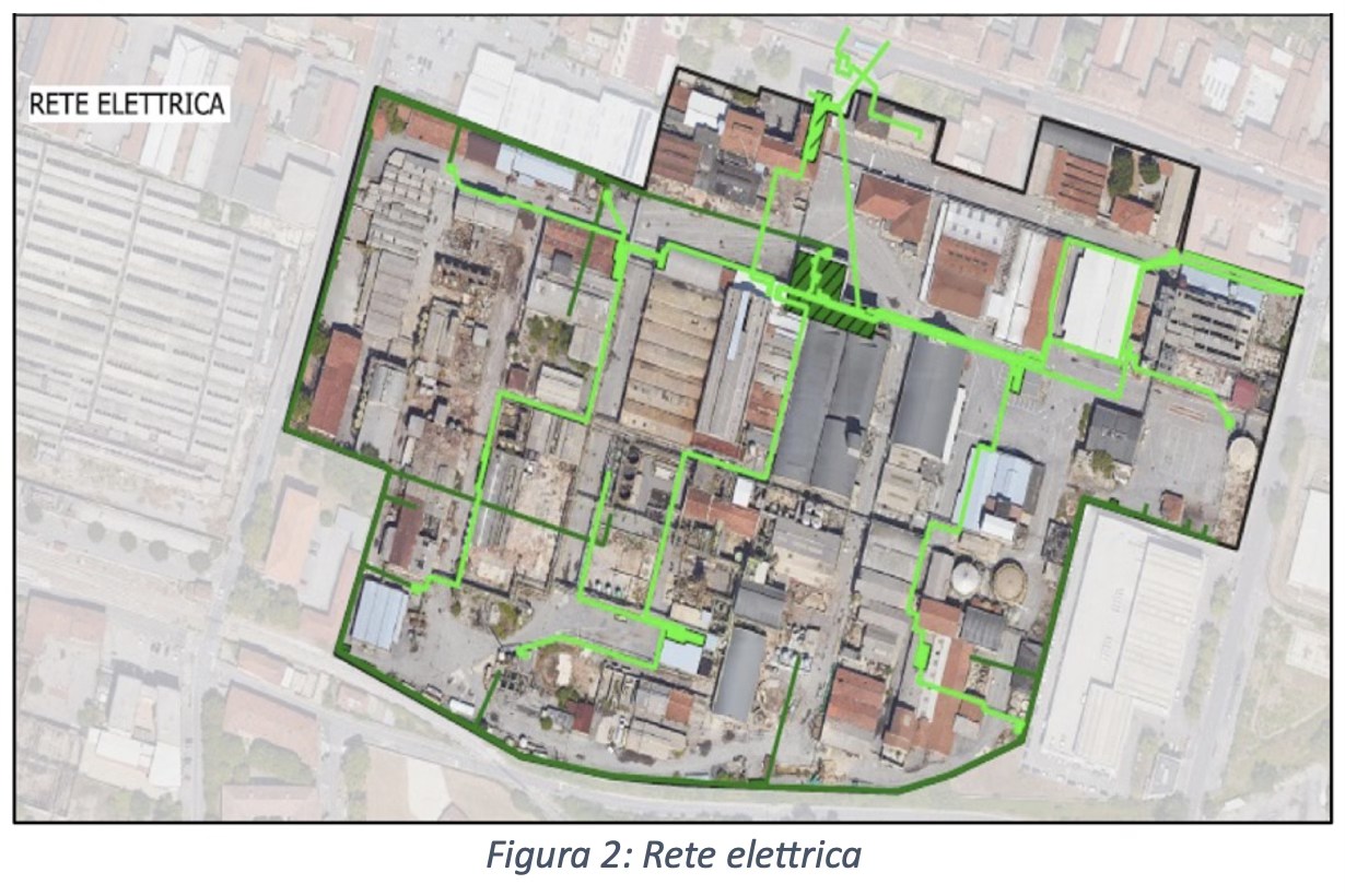 - Realizzazione nuova rete di distribuzione elettrica: installazione di una rete elettrica aggiornata a servizio delle attività di demolizione e bonifica (Figura 2).