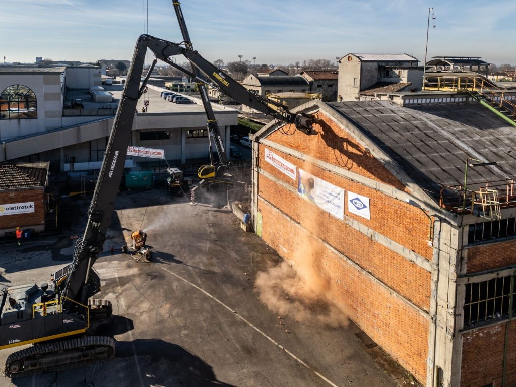 - Avviate delle attività propedeutiche alla demolizione degli edifici: sgombero da rifiuti, successivo svuotamento interno dell’edificio (strip-out) ed avviate le attività di bonifica e rimozione dell’amianto presente in sito;